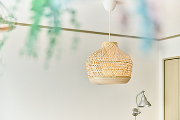 照明は、ペンダントライト・フロアライト・壁掛けライトの3種類を組み合わせ、すべてオーナーが厳選したこだわりのアイテム。