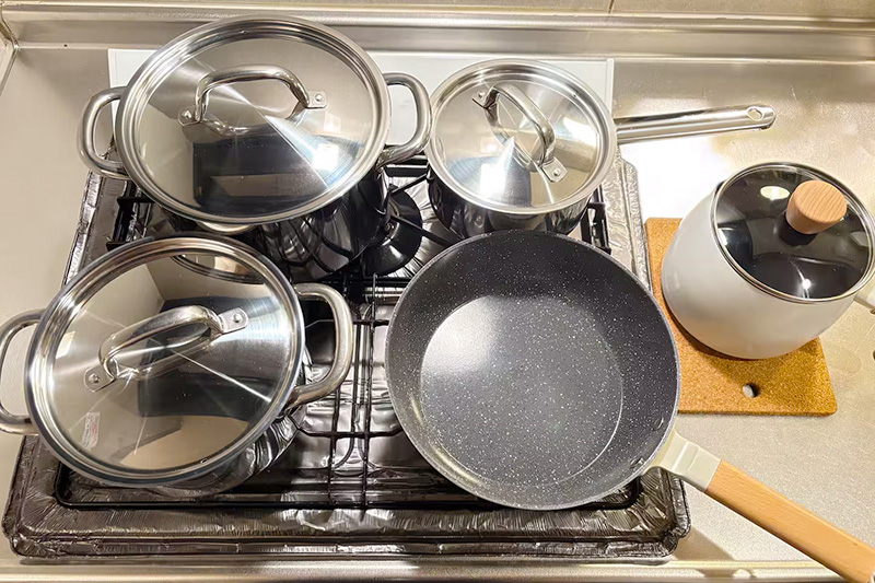 基本的な調理器具や食器類、カトラリー、子ども用食器も豊富で、滞在中のお料理を気軽に楽しめる環境です。